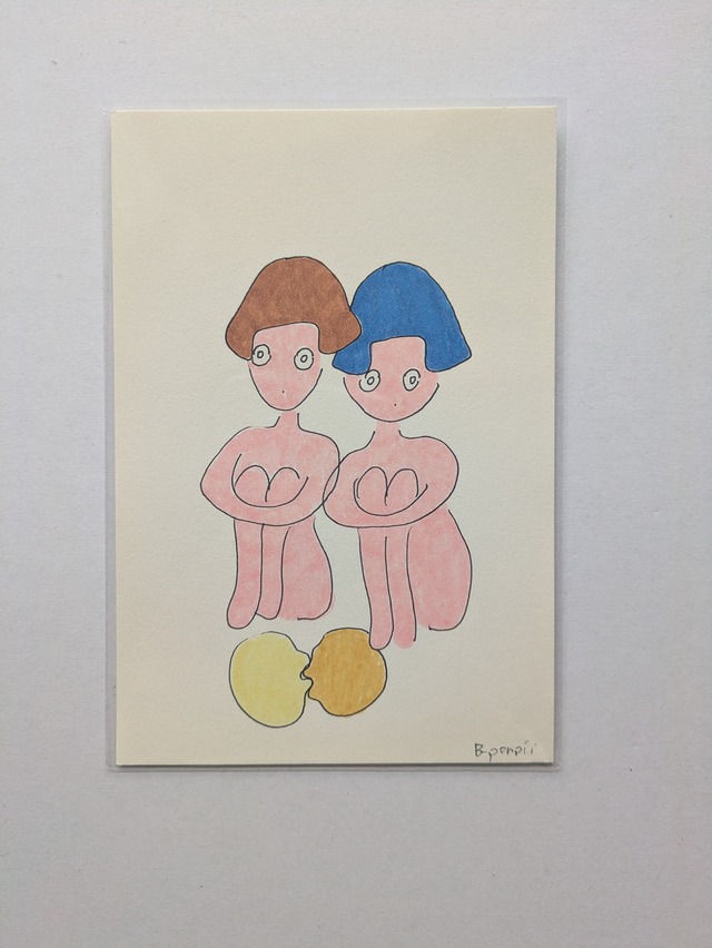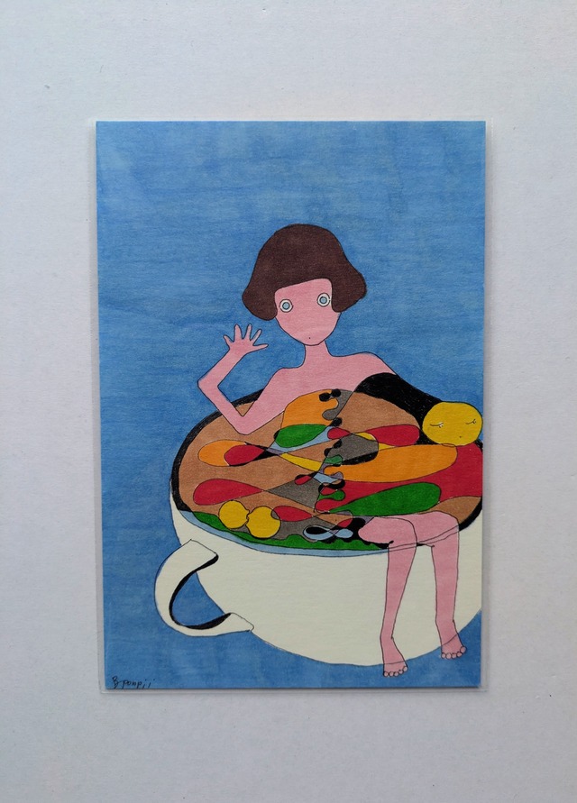 ポストカード(100mm×148mm)にペンとマーカーで着色した原画です。 透明保護フィルム付。