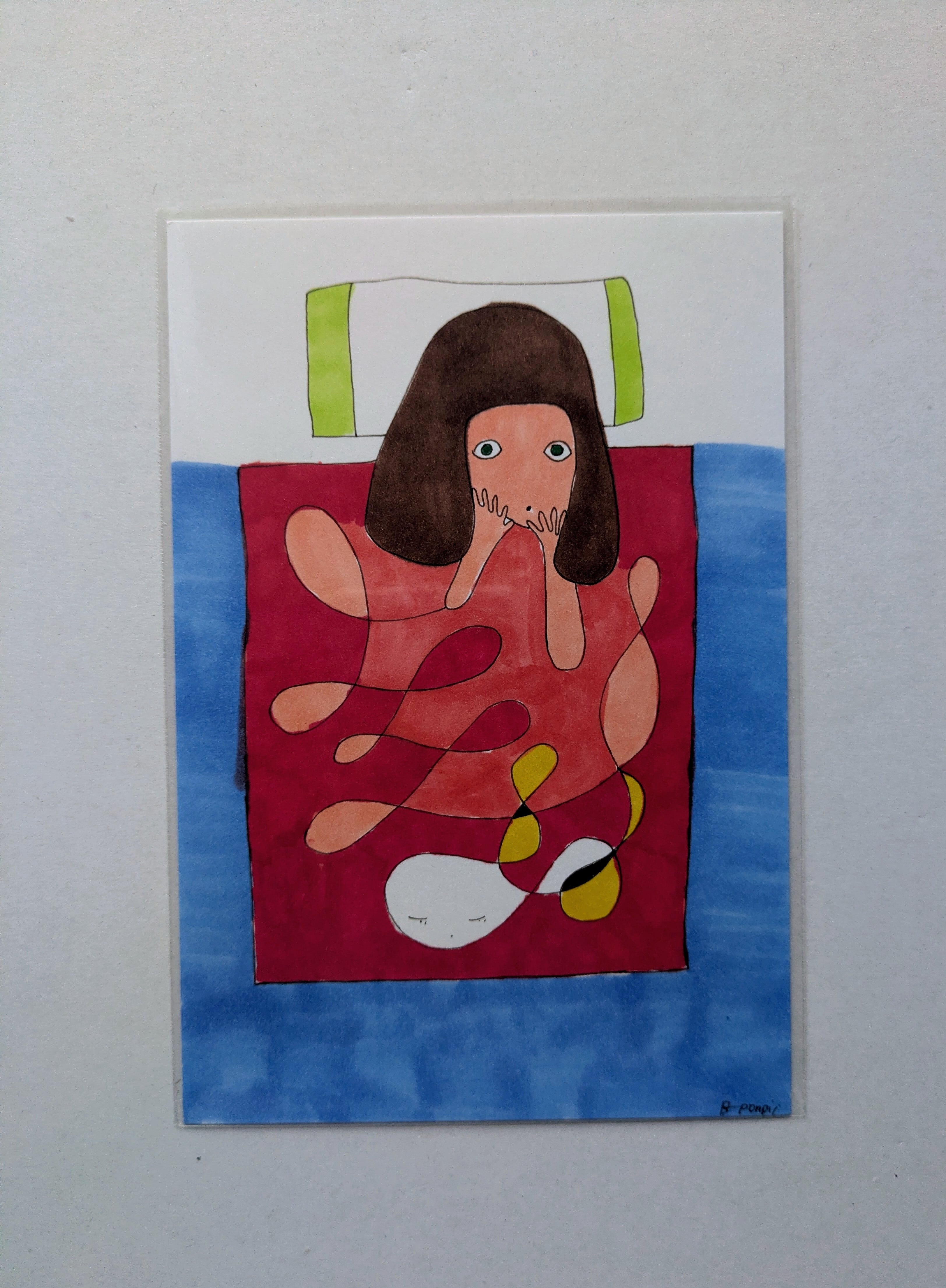 ポストカード(100mm×148mm)にペンとマーカーで着色した原画です。